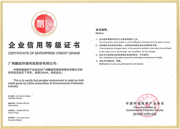 中國環(huán)境保護(hù)產(chǎn)業(yè)協(xié)會AAA級信用企業(yè)