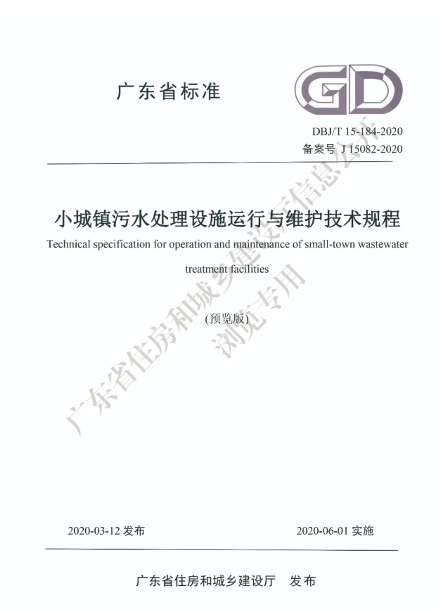 為貫徹《中華人民共和國環(huán)境保護法》、《中華人民共和國水污染防治法》、《廣東省環(huán)境保護條例》等法律法規(guī),提升城鄉(xiāng)污水治理水平,規(guī)范小城鎮(zhèn)污水處理設(shè)施運行、維護過程,確保設(shè)施有效、穩(wěn)定、安全運行,充分發(fā)揮處理設(shè)施的使用功能。廣東省正加快城鄉(xiāng)污水處理設(shè)施的建設(shè),為更好地開展建設(shè)工作,廣東省住房和城鄉(xiāng)建設(shè)廳發(fā)布了《小城鎮(zhèn)污水處理設(shè)施運行與維護技術(shù)規(guī)程》,并于2020年6月1日起實施。