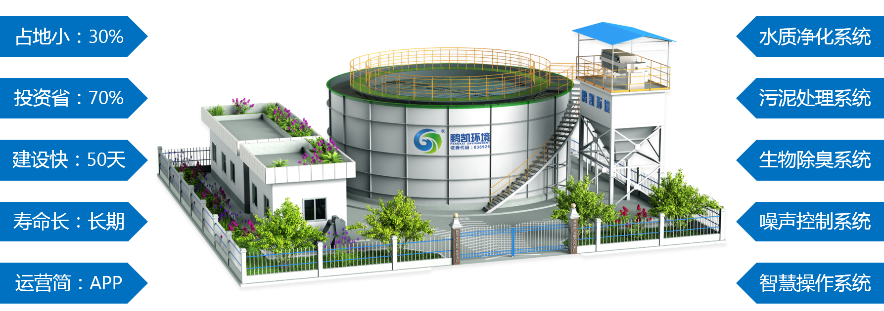 鵬凱圓-模塊化(裝配式)污水處理系統(tǒng),擁有可調(diào)控智能曝氣系統(tǒng)、低能耗自循環(huán)系統(tǒng)、高效好氧三相分離器的應(yīng)用、自載固體碳源填料、智能運(yùn)營管理系統(tǒng)等5大核心技術(shù)優(yōu)勢(shì),其占地更小、投資更省、建設(shè)周期更短、運(yùn)行更加智能等綜合優(yōu)勢(shì)引領(lǐng)污水處理產(chǎn)業(yè)發(fā)展,開啟了工廠化預(yù)制污水處理系統(tǒng)的新模式。鵬凱 “工程設(shè)備化、設(shè)備標(biāo)準(zhǔn)化、運(yùn)維智能化” 三化理念,更能適應(yīng)環(huán)境政策和社會(huì)的快速發(fā)展的要求。