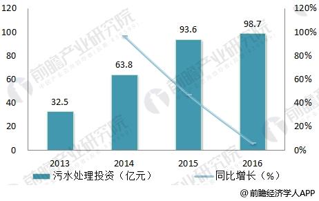 2013-2016年中國(guó)農(nóng)村污水處理投資情況