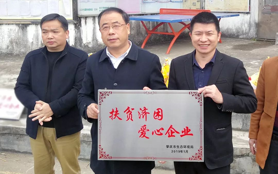 廣州鵬凱環(huán)境科技股份有限公司董事長王國彬、副總經(jīng)理劉秀平一同參加了慰問,肇慶市生態(tài)環(huán)境局局長程海濱向鵬凱環(huán)境贈與了“扶貧濟困 愛心企業(yè)”牌匾。