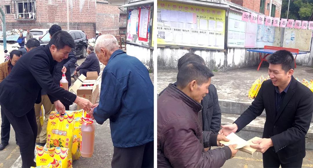 ▲肇慶市生態(tài)環(huán)境局局長程海濱到上帶村向困難群眾送達慰問品