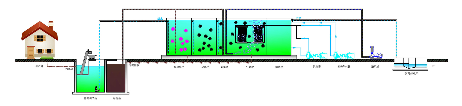 二、E-co-MBR 臥式一體化污水處理裝置工藝流程圖