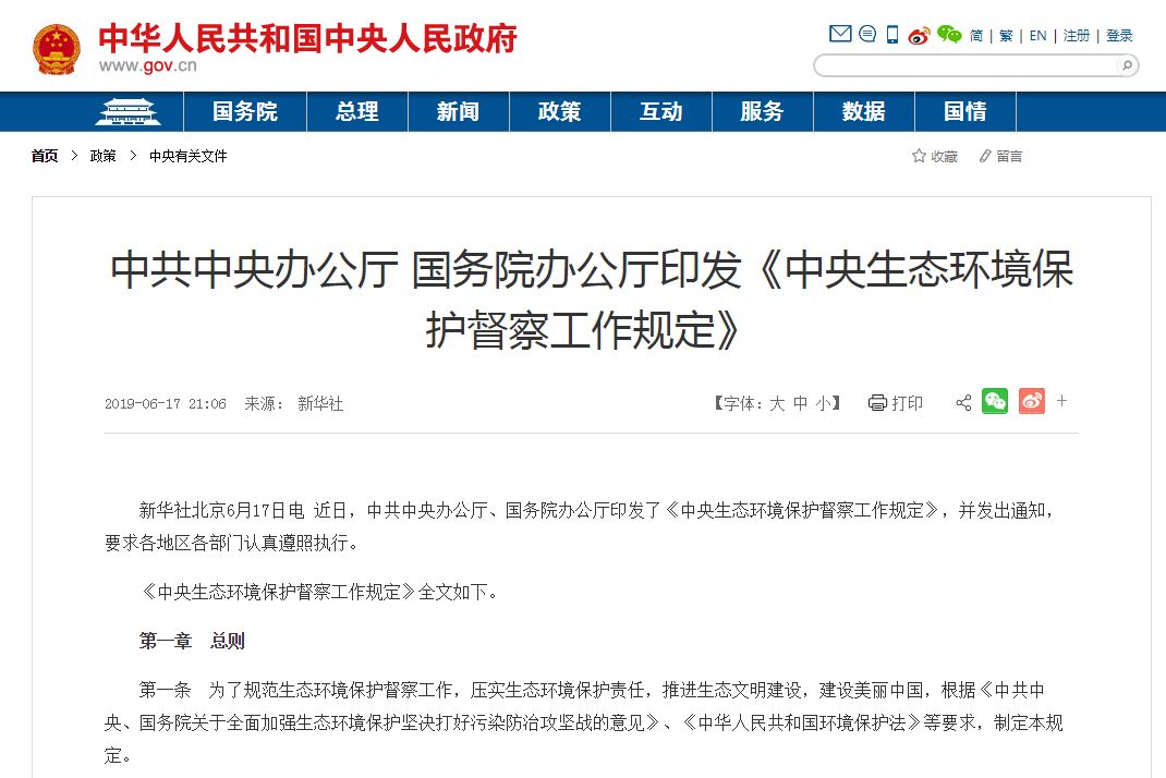 《中央生態(tài)環(huán)境保護督察工作規(guī)定》