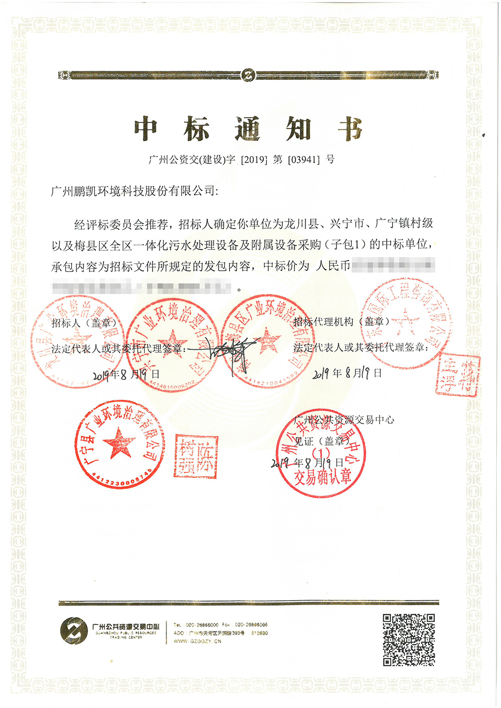 喜報(bào)|鵬凱環(huán)境中標(biāo)龍川縣、興寧市、廣寧鎮(zhèn)村級(jí)以及梅縣區(qū)全區(qū)一體化污水處理設(shè)備及附屬設(shè)備采購(gòu)項(xiàng)目