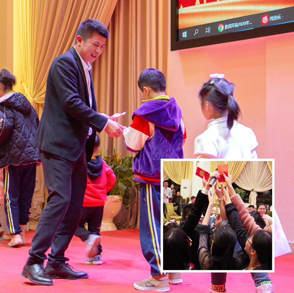 王國彬董事長給鵬凱“富二代”與未婚同事們派發(fā)紅包